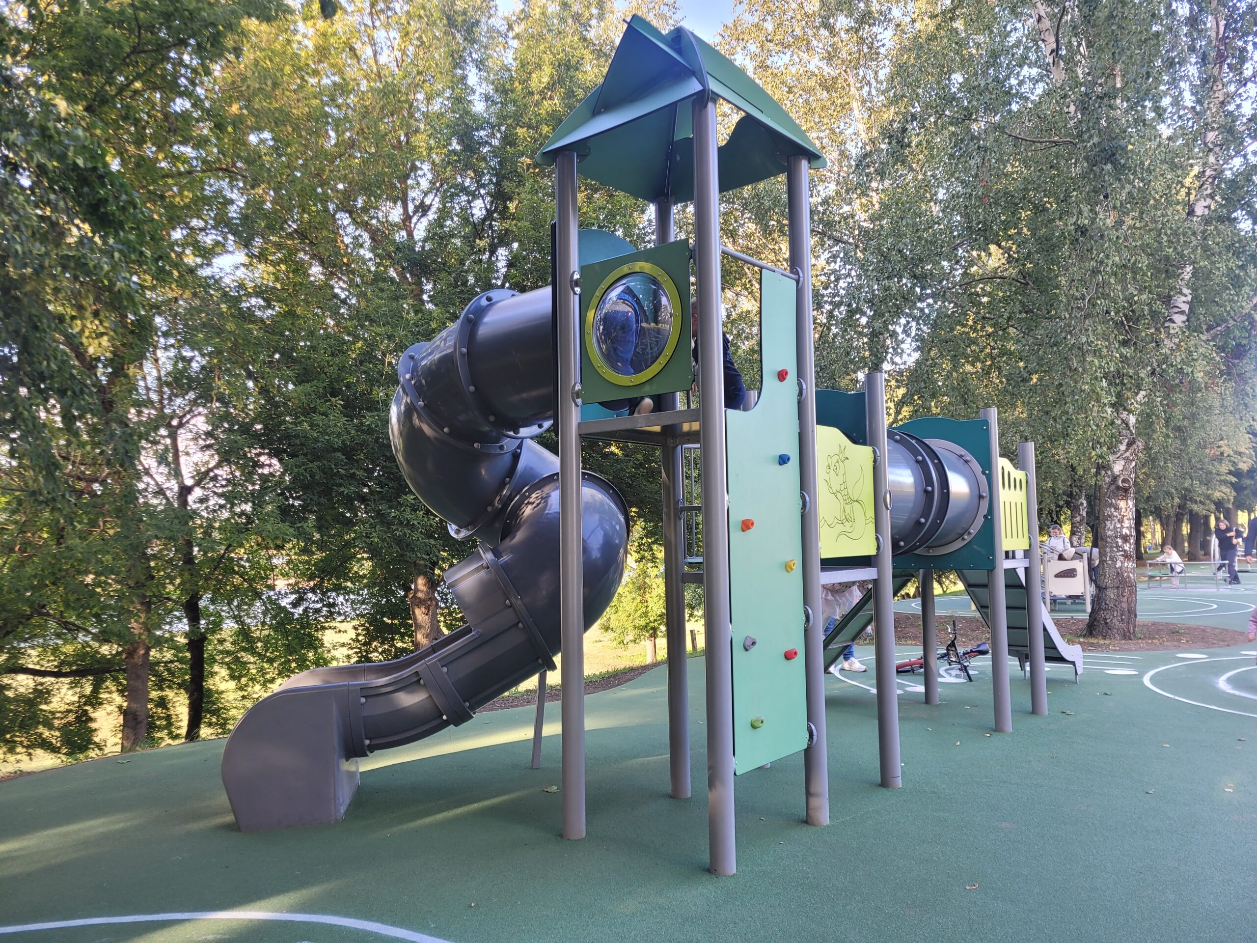 Tėvams ramiai prisėdus ant suoliuko, greitai tenka keisti lokacija, nes vaikas jau lekia į kitą aikštelės galą kur yra dar viena, labai įspūdinga čiuožykla. Šias abi mes esame įtraukę į Įdomiausios čiuožyklos vaikams Lietuvoje sąrašą.