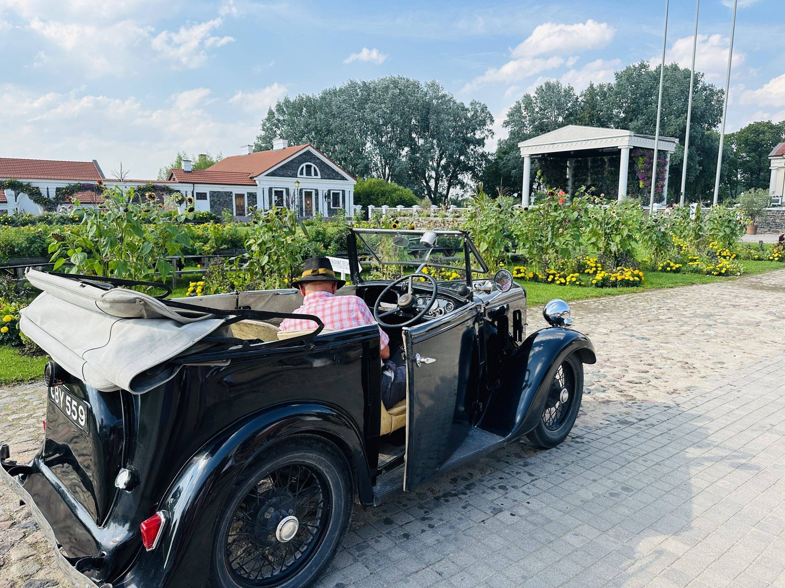 Čia automobilius galima paliesti, apžiūrėti iš arčiau, pasivažinėti jais ar net išsikviesti kaip taksi. Po dvaro teritoriją rieda unikalus hipomobilis – tarsi karieta ir automobilis viename, kuriuo riedant patirsite tikrą senovės dvasią. Greta stovi ir juodas, nedidelis dviduris 1936 m. kabrioletas „Austin Seven“ – savo laikmečiu itin populiarus britiškas automobilis.
