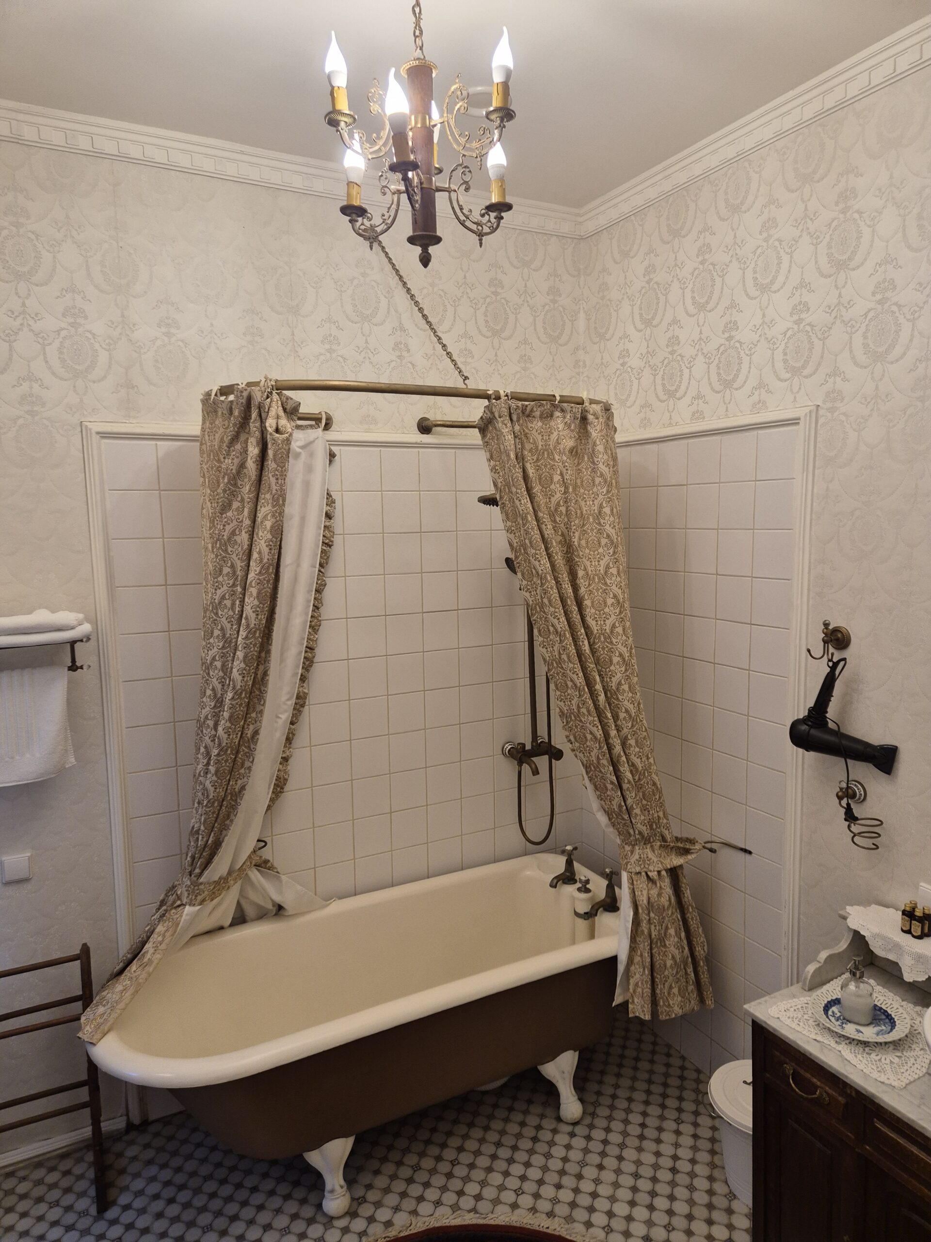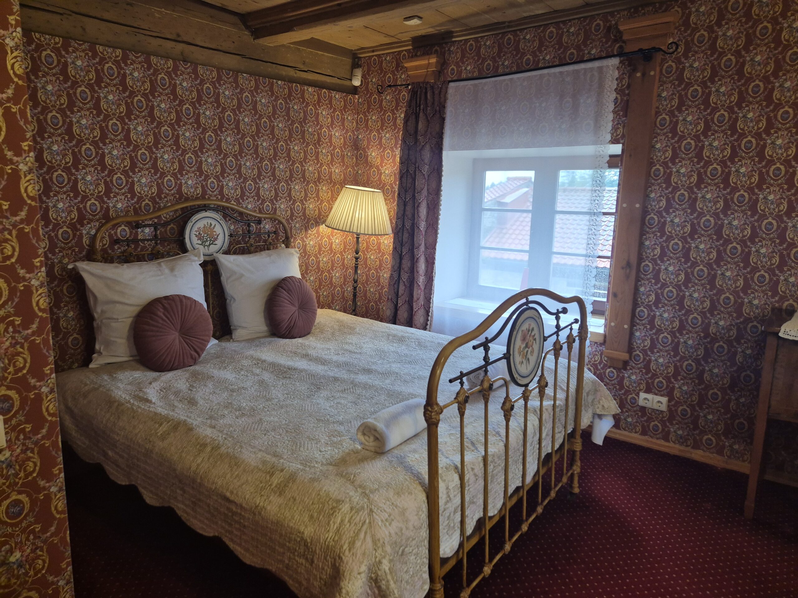 Dvaro svečių namai, esantys virš kavinės, taip pat siūlo dviviečius kambarius su dvigulėmis lovomis ir privačiais vonios kambariais. Čia rasite ir dubliuotus dviviečius kambarius su bendru prieškambariu bei vonios kambariu.