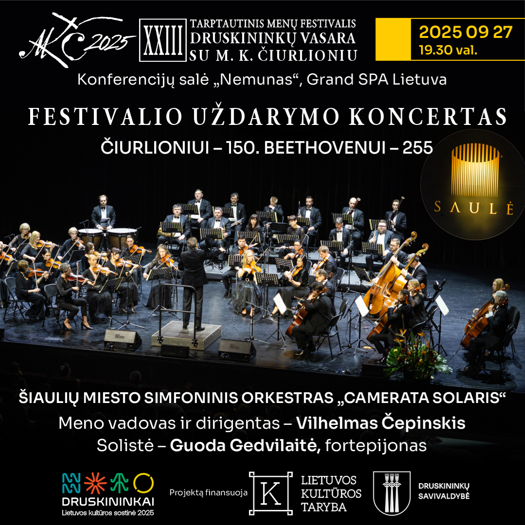 Rugsėjo 27 d. 19:30 val. konferencijų salėje „Nemunas“ („Grand SPA Lietuva“) vyks festivalio „Druskininkų vasara su M. K. Čiurlioniu“ uždarymo koncertas. Programoje – M. K. Čiurlionio ir L. van Beethoveno kūriniai.