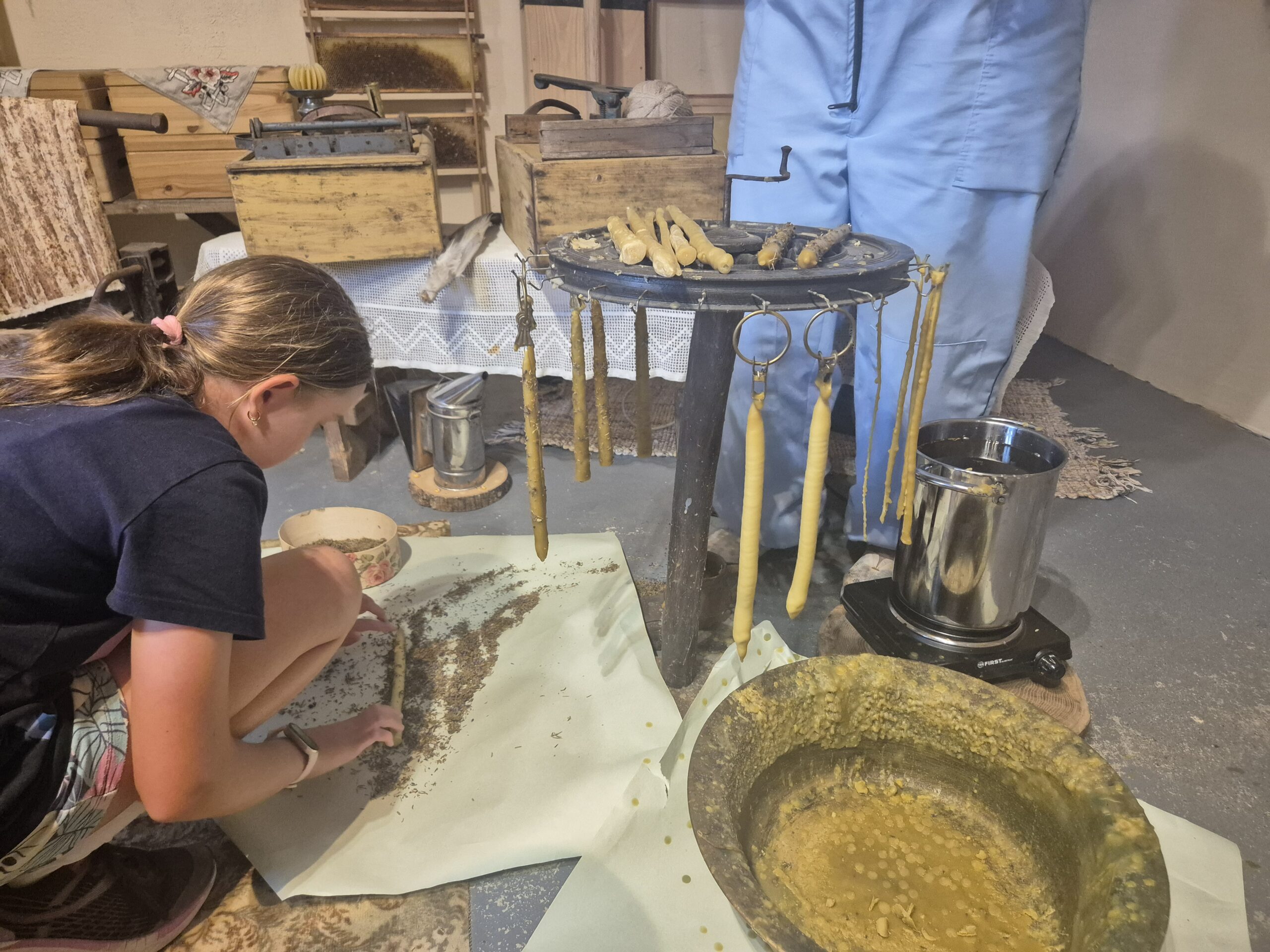 Praktinėje dalyje vaikai susipažįsta su žvakių liejimo tradicija. Pasitelkę šiuolaikiškesnius įrankius, jie patys išsilydo vaškinę figūrėlę arba žvakę, kurią parsiveža namo kaip prisiminimą.
