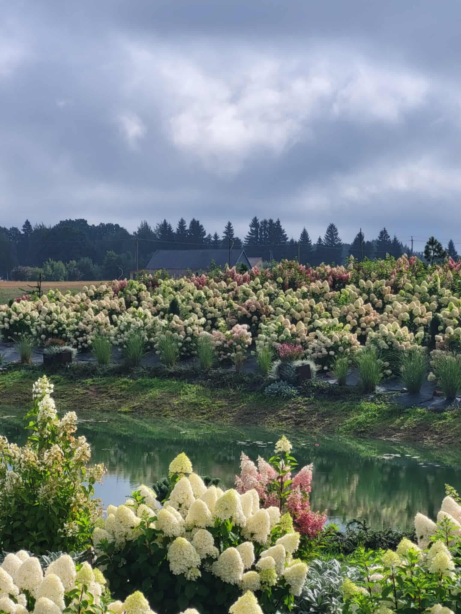 Hortenzijų rojus žavus ne tik gėlėmis – šalia yra tvenkinys, kuriame plaukioja žuvys, pati aplinka labai graži ir jauki, kurioje smagiai praleisite laiką vaikštant didžiulių žiedų apsuptyje.